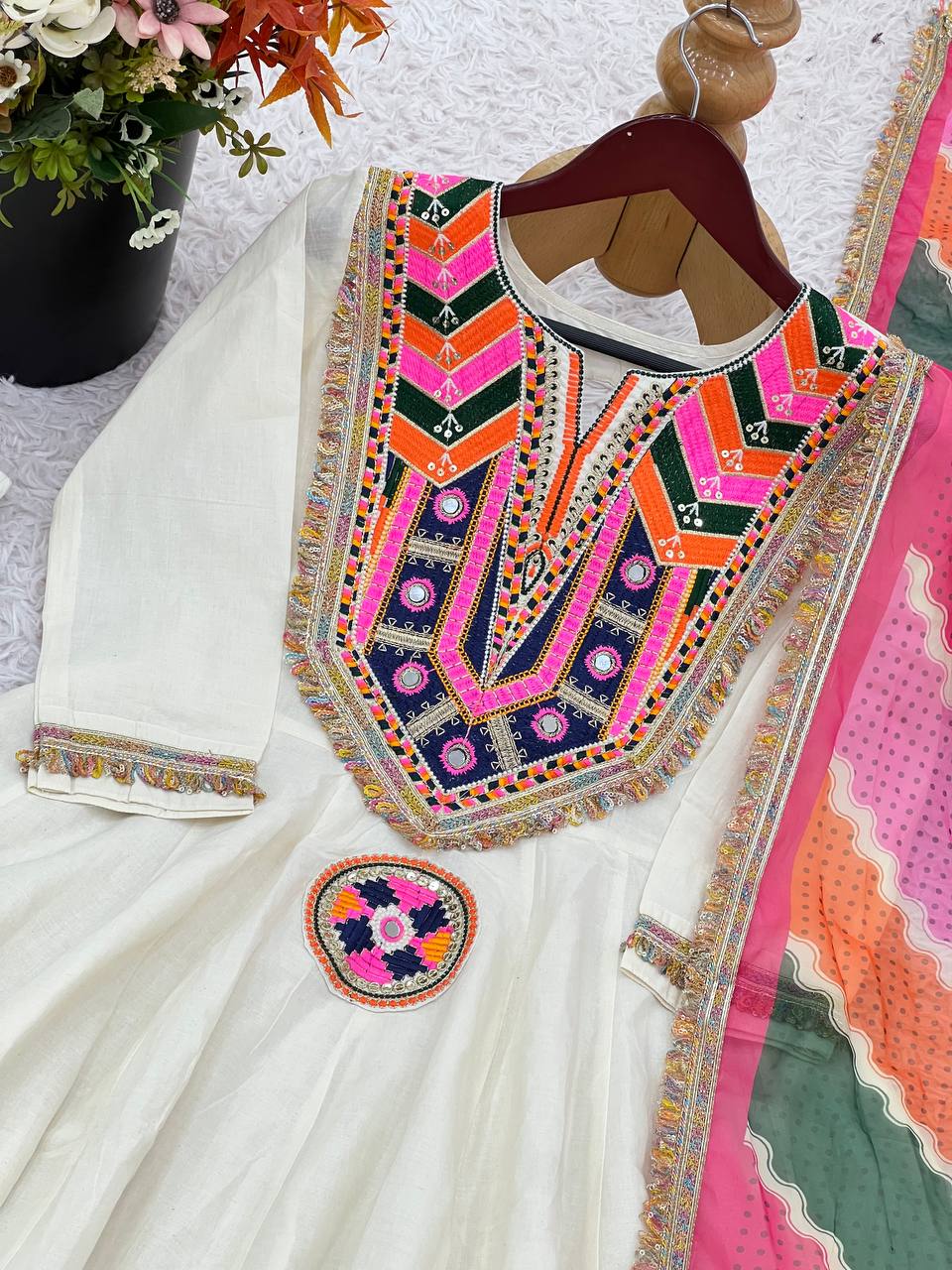 ✔ Premium Khadi Cotton with real mirror & sequence embroidery