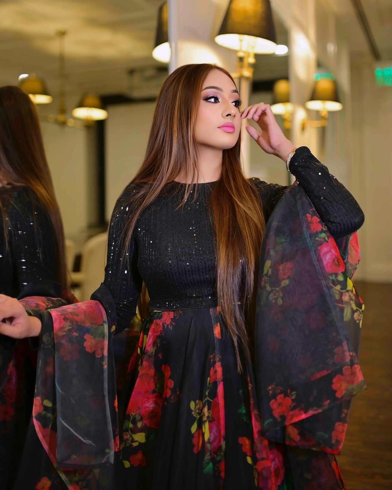 💫 Dupatta: Matching organza floral printed dupatta that completes the dreamy look.