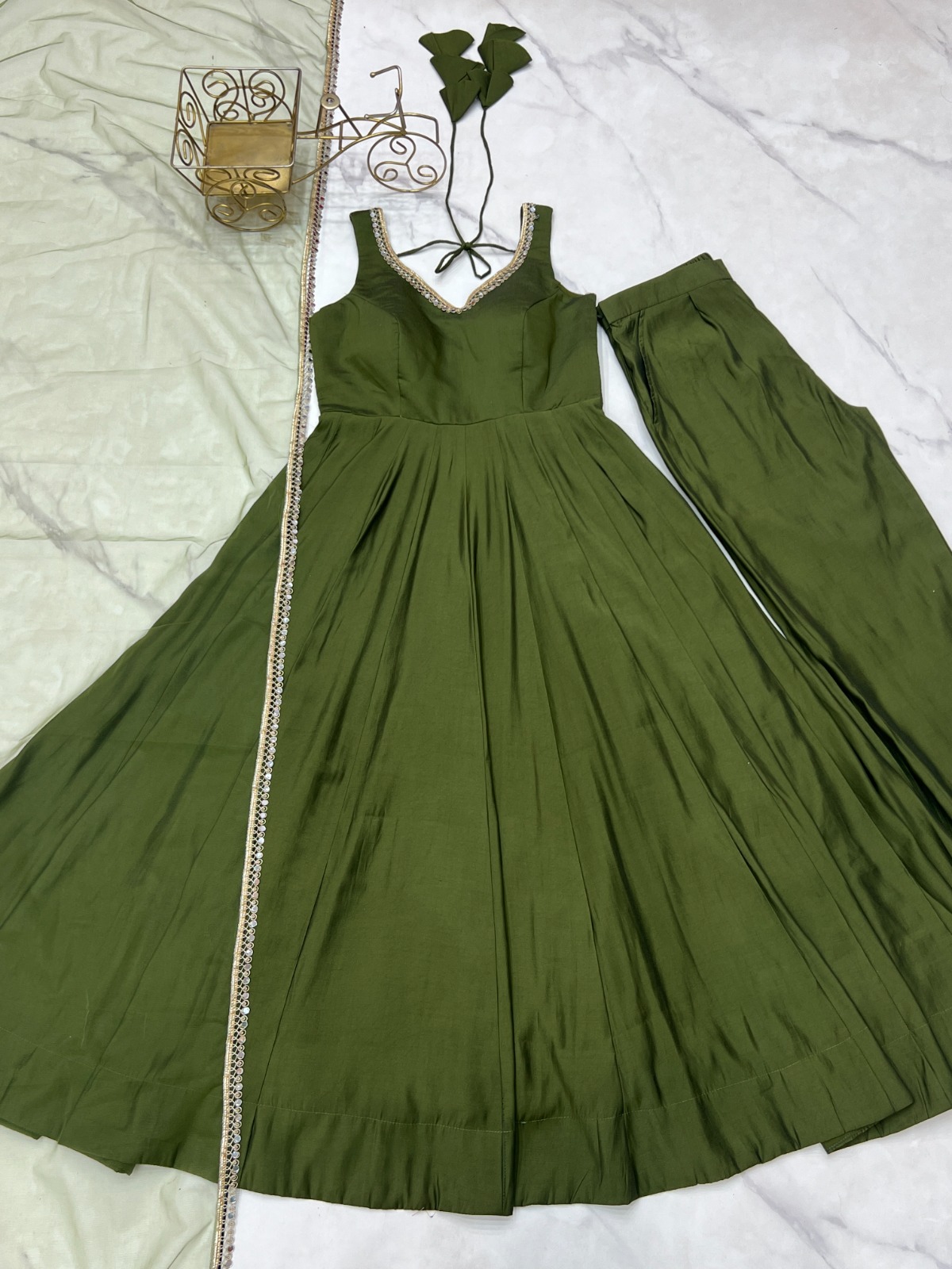 ✔ Stylish Silk pant, ready-to-wear design